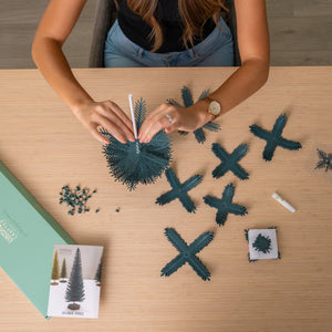 Make a statement with this bold, lifelike paper tree. It’s the tallest of the tree trio and perfect for anchoring your holiday setup on a shelf, hearth, or large surface. Each kit comes with pre-cut cardstock boughs you’ll curl and fluff—no cutting necessary. Style it solo or pair it with other sizes to create a charming paper forest.