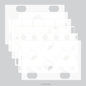 The Ornaments Stencil Pack Includes six layering stencils that make it simple to create a pattern of multi-colored ornaments. Plus, use the snowflake layer stencil to create an all snowflakes background! The extra-large 6x9 size allows you to create two A2 card fronts at once, making holiday crafting faster and more fun. Six 6x9 stencils.