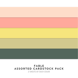 The Fable Assorted Cardstock Pack is available during the month of November and includes two sheets each of Nectar, Watermelon, Starfruit, Pistachio and Rainforest.