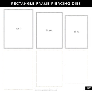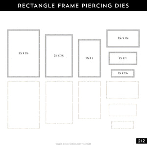 Surround your design in sweetly stitched details with the Rectangle Frame Piercing Dies! This set contains 9 rectangle piercing dies ranging in size from approximately 5/16" x 1-3/4" to 3-3/4" x 5". Each of them adds an easy-to-follow stitching guide to your card front so you can add stitched detail to any design.